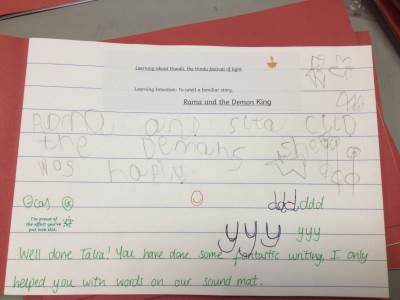 Children have immersed themselves trying Bhangra and Bollywood dance, learning about India creating Rangoli, making barfi, involving themselves in drama and writing about the Rama Sita Story and